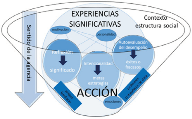 De acuerdo con Giddens (Ahearn, 2001), en cuanto a que las acciones de las personas se configuran por las estructuras sociales, nuestro estudio identificó que, además de los contextos sociales, las otras dimensiones de los participantes, como parte de sus experiencias, permitían emergiera que el sentido de la agencia de los estudiantes.