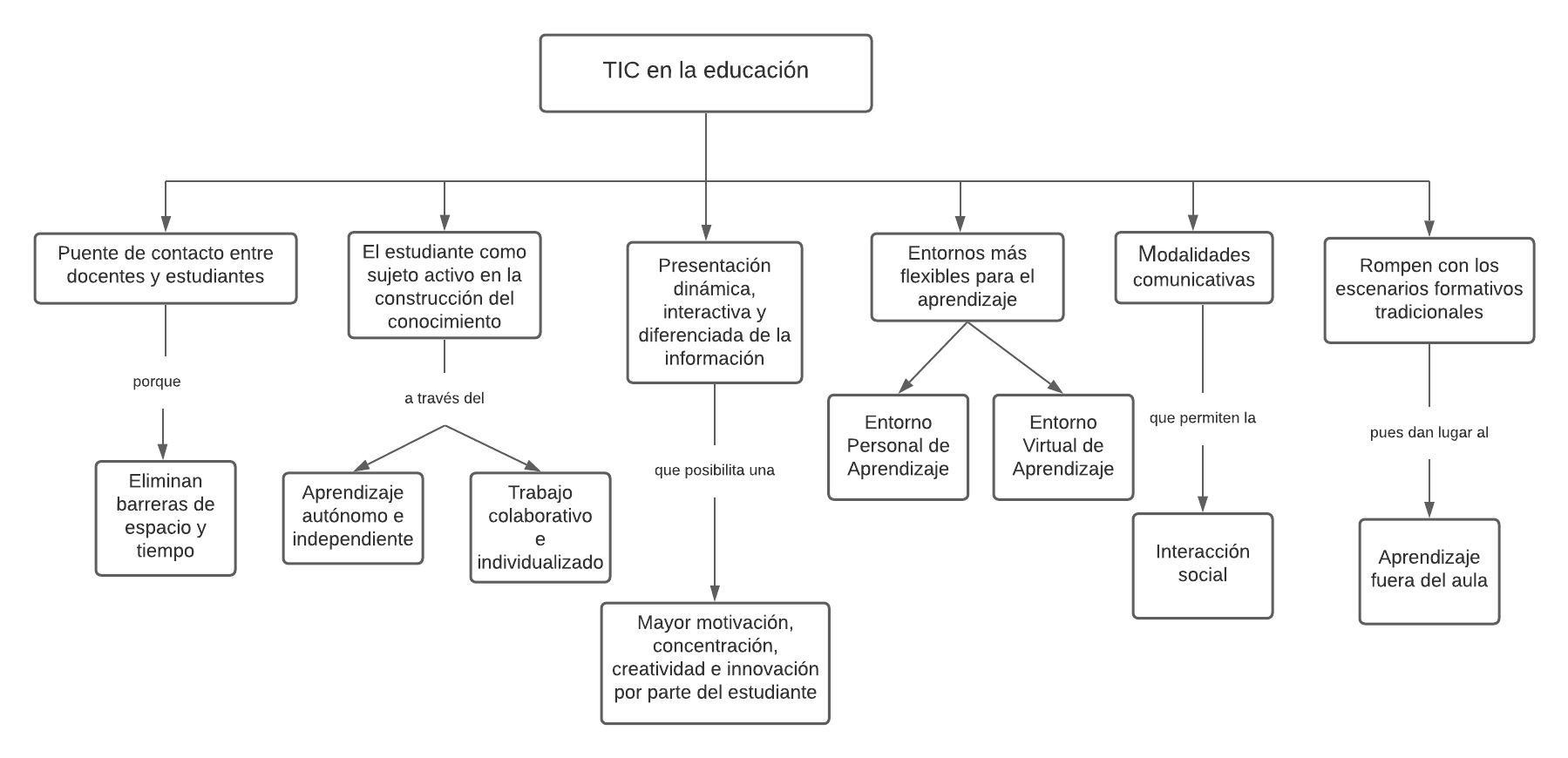 El uso progresivo y generalizado de las TIC suscita cambios que alcanzan todos los ámbitos del quehacer humano, y es en la educación donde su impacto se manifiesta significativamente (Márquez-Graells, 2013; Parra-Mosquera, 2012; Riveros y Mendoza, 2005). En este contexto, destaca la reconfiguración del papel que desempeñan docente y estudiante en el proceso de enseñanza-aprendizaje, la transmisión del conocimiento, la presentación de los contenidos, así como la construcción de entornos virtuales de aprendizaje (ver figura).