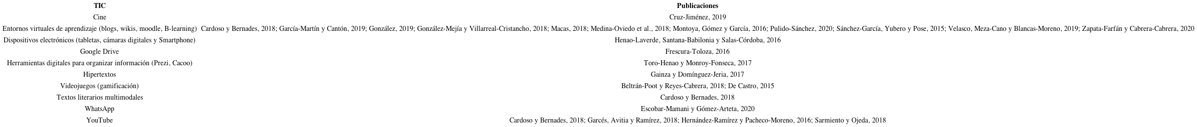 Las TIC que utilizamos como recurso educativo en las estrategias documentadas son variadas y diversas. En la Tabla 4 mostramos algunas de sus posibilidades y potencialidades didácticas en la enseñanza y el aprendizaje de la lectura y la escritura.