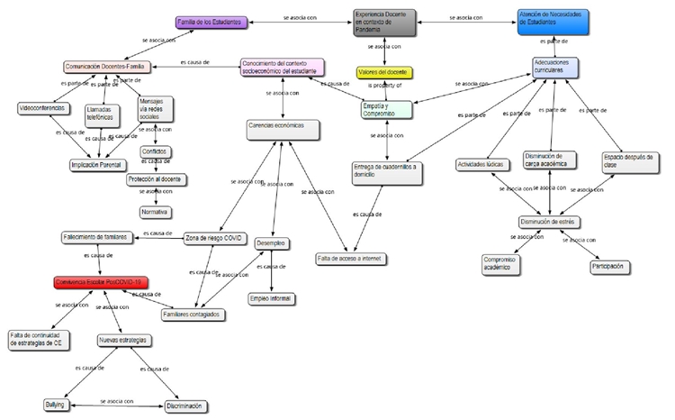 La información que emergió es relevante, ya que contribuye a visibilizar los cambios en la convivencia escolar en este escenario educativo, los principales desafíos, y, sobre todo, de qué manera los docentes han adaptado su práctica a favor no solo de la adquisición de los aprendizajes, sino también de seguir construyendo espacios para la convivencia escolar con la intención de contribuir al desarrollo integral de sus estudiantes.
