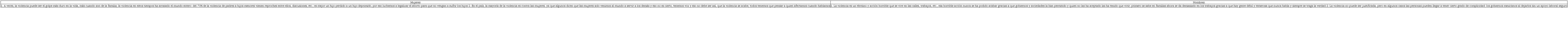 Finalmente, en este ámbito, observamos que las reflexiones sobre la violencia están diferenciadas por género; es decir, las mujeres pensaron con mayor detenimiento el tema de la violencia familiar y la que se ejerce contra la mujer, mientras que los hombres hablaron sobre violencia económica y laboral.