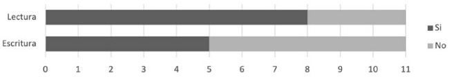 Con esto, sabemos que al menos cuatro participantes utilizan la escritura en su práctica laboral, pero también como forma de relacionarse con los otros. Estas respuestas son claro ejemplo de que, si situamos la lectura y la escritura en contextos y motivaciones de uso más amplios (como leer una receta de cocina para aprender a cocinar) o como este ejemplo de anotar todo el tiempo cuentas y listas, entonces podemos afirmar, de acuerdo con Zavala (2008), que los textos que leemos y escribimos se insertan en las prácticas de nuestra vida y no al revés.