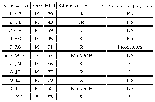 De los 11 participantes, ocho de ellos ya eran lectores previos, lo que demuestra que forman parte del sector con adquisición de capital cultural legítimo (Bourdieu, 1997), que tuvieron educación universitaria y que la lectura estuvo al alcance de ellos, desde niños o jóvenes. Así también, cinco participantes ya practicaban la escritura creativa desde antes, pero sin pretensiones de publicar o profesionalizarse en el tema.
