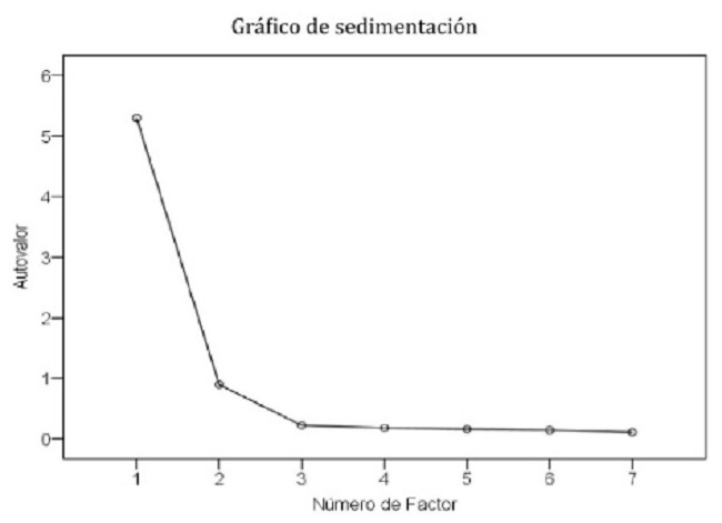 Utilizamos el análisis factorial exploratorio (AFE) para examinar el conjunto de variables latentes o factores comunes que explican las respuestas a los ítems del instrumento de evaluación y el grado en que las categorías se mezclan a lo largo de estas dimensiones (Lloret-Segura et al., 2014). Como paso previo, los supuestos requeridos para el uso del AFE se cumplieron mediante la aplicación del índice Kaiser, Meyer y Olkin (KMO) y la prueba de esfericidad de Bartlett. Asimismo, dado que la métrica de los ítems es una escala de siete niveles, los datos se trataron como variables pseudocontinuas, pues, de acuerdo con Bentler (2006), en este caso las distorsiones presentadas en los análisis son mínimas. Además, la consistencia interna del instrumento se determinó con el coeficiente de confiabilidad alfa de Cronbach. El software utilizado para llevar a cabo los análisis correspondientes fue el SPSS Statistics 22.