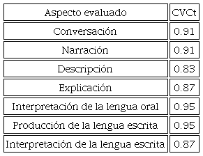 Posteriormente, durante el trabajo con el comité de indicadores, se sugirió eliminar la dimensión de reflexión sobre la lengua, debido a que esta se encuentra implícita dentro de las dimensiones de producción e interpretación sobre la lengua (Ferreiro, 2006). Con base en estas recomendaciones, obtuvimos la estructura final que mostramos en la tabla 4.