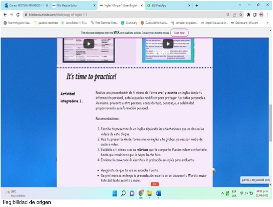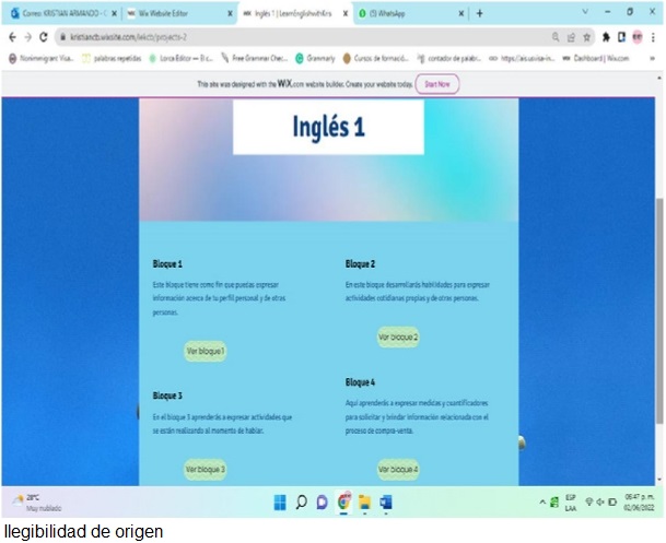 Another limitation was that the platform https://wix.com requires a payment to get a domain in order to appear in search engines like Google, Yahoo, Microsoft Bing, Baidu, among others, but it does allow the use of the Uniform Resource Locator (URL) (https://kristiancb.wixsite.com/lekcb). Unfortunately, the attainment of the domain entailed an economic investment which was out of the researcher’s hands. Still, the internet site was promoted in academy meetings with other English teachers and students by sharing the URL; nonetheless, individuals who are not part of the teacher’s class cannot find the website unless they have the web address.