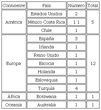 De acuerdo con la figura 2, cinco estudios fueron realizados en países de América, doce, en Europa, y uno en África y otro en Oceanía. La tabla 2 contiene el número de artículos agrupados por continentes y países.