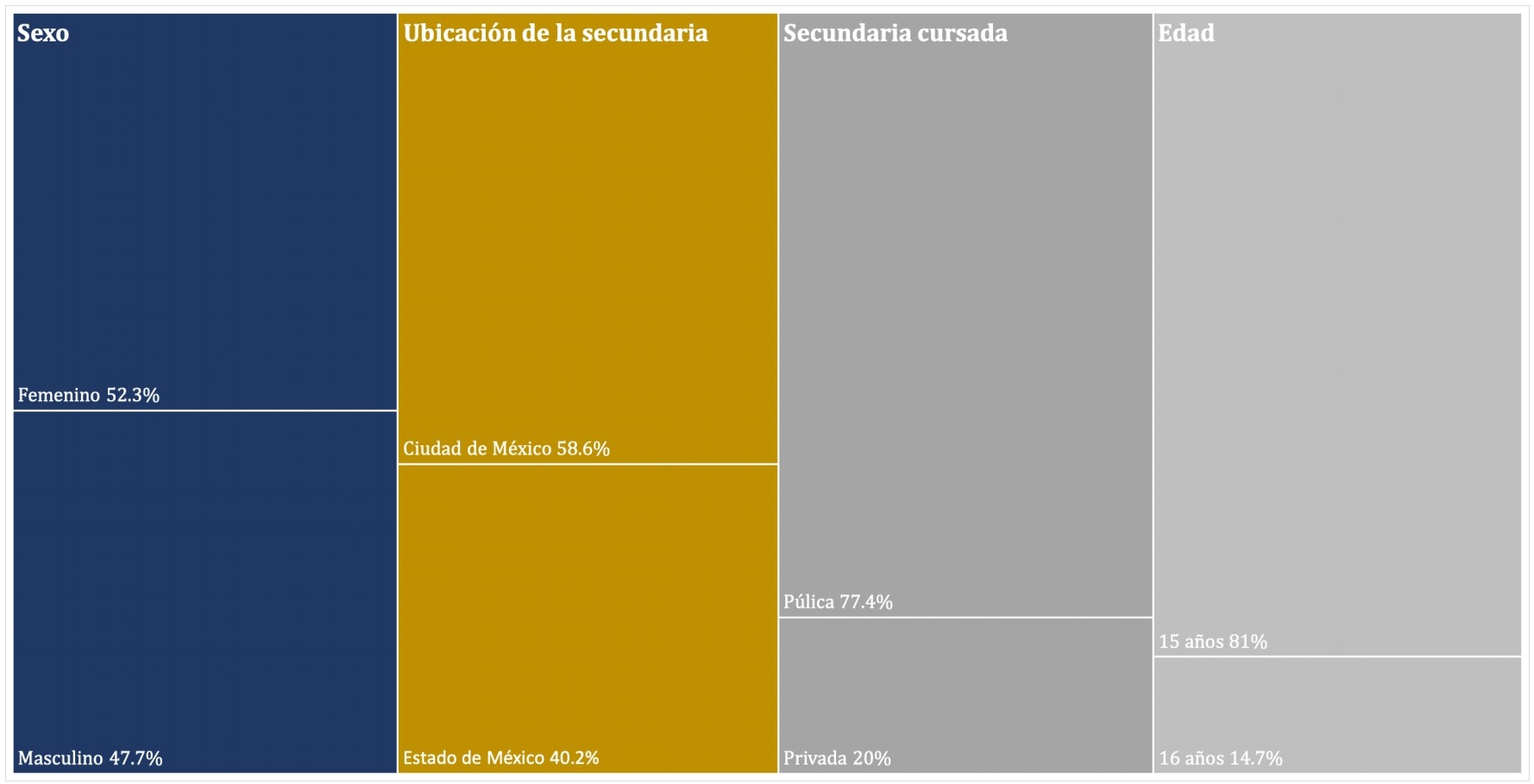 Entender la configuración del subsistema de bachillerato que conforma la UNAM implica reconocer el perfil de la población que la distingue de otras instituciones y, por tanto, su relación con el conjunto del SEMS. La figura 3 recupera algunos datos que ilustran quiénes son los alumnos en este nivel educativo.