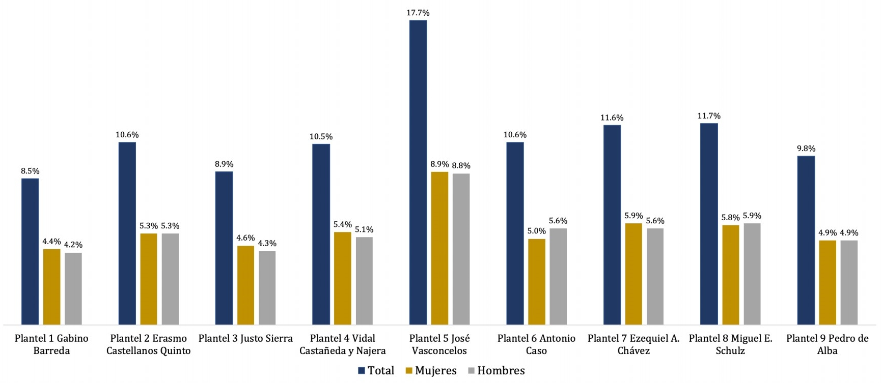 Estos datos son relevantes en el contexto de la mayor apertura a reconocer que el género es un constructo amplio y complejo que trasciende las visiones tradicionales del binarismo entre mujeres y hombres (Lamas, 2016) y que se corresponde con un estudio realizado en 2021 por el Instituto Nacional de Estadística y Geografía (INEGI) en la Encuesta Nacional sobre Diversidad Sexual y Género. En sus resultados, se muestra que el 5.7% de la población se identifica con una identidad sexual y de género diversa (INEGI, 2022). En el mismo sentido, la primera consulta universitaria sobre condiciones de igualdad de género de la comunidad LGBTIQ+ arrojó que, del estudiantado que participó, el 1.3% se reconoció como parte de la diversidad sexual y de género (UNAM, 2022).
