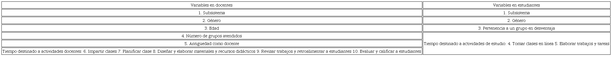 En la tabla 2 mostramos las variables independientes asociadas al perfil de docentes y estudiantes que retomamos para el análisis de regresión logística utilizado.