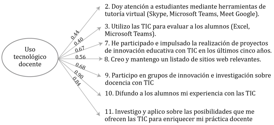 En México, Ortega-Sánchez (2021) desarrolló una escala de uso tecnológico en alumnos universitarios, que fue elaborada con 20 reactivos y tres dimensiones; sin embargo, no se probó su confiabilidad ni se reportaron datos de que el instrumento haya sido sometido a un proceso de validación. En cuanto a los docentes de educación básica mexicanos, se diseñó una escala para evaluar las experiencias docentes del uso de tecnología educativa en la contingencia sanitaria por SARS-COV2 (García-Leal et al., 2021); los autores informan que la escala muestra fiabilidad estadística, pero no indican el valor de la prueba estadística utilizada para determinarla ni señalan el proceso de validación psicométrica realizado.