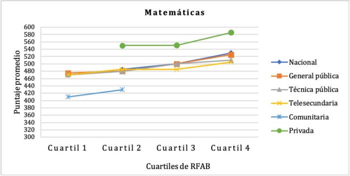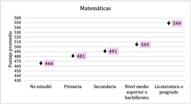 La relevancia de este nivel para los resultados de las pruebas muestra similar tendencia a lo observado con el nivel socioeconómico de la familia. Además, en los mismos reportes de PLANEA se sostiene que está relacionada con la acumulación de bienes, servicios y recursos que favorecen la permanencia escolar y contribuyen al desempeño educativo de los hijos. Escolarización y posesión de recursos influyen en el acompañamiento y en las expectativas académicas, pues la estructura familiar condiciona las relaciones entre sus miembros y se constituye como vehículo de transmisión de capital cultural, el cual mejora su función educativa y se refleja en los resultados escolares (Blanco, 2017; Caracas y Ornelas, 2019; Carrillo et al., 2018; Eryilmaz y Sandoval-Hernández, 2021; Hernández y Bazán, 2016; Meier y Mollergaard, 2017; Mollergaard y Meier, 2015).