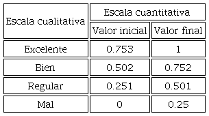 Tomando la expresión 4, se determina la escala conforme al sistema evaluativo en Cuba para la educación superior, que se refleja en la tabla 8.