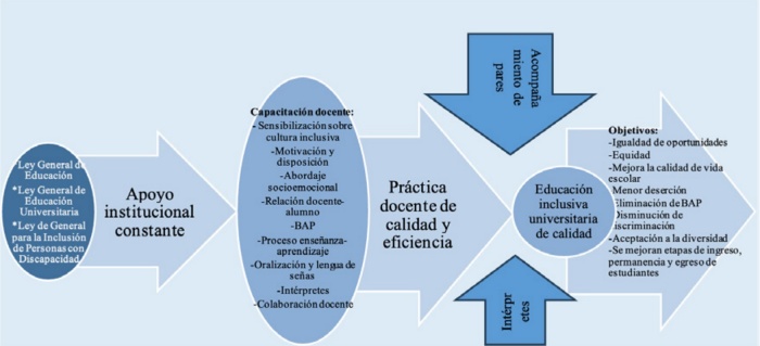 De acuerdo con Jácome y Álvarez (2020), las instituciones de educación superior deben incorporar en sus políticas educativas prácticas inclusivas que promuevan la capacitación docente. Esta formación debe permitirles desarrollar pedagogías flexibles que integren la diversidad del estudiantado.